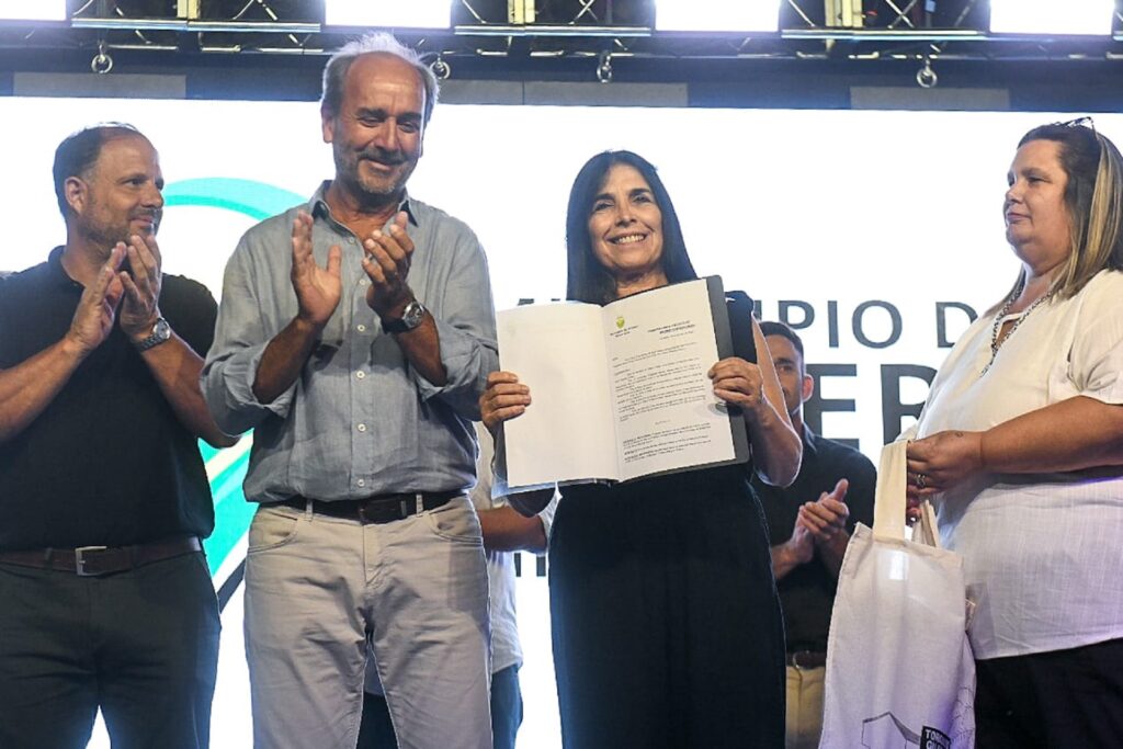 Tras agradecer a la vicegobernadora Aluani por el acompañamiento en la celebración, el intendente Lacoste y la viceintendente María Estela Aizaga le entregaron a la vicegobernadora una copia del decreto que la reconoció como Huésped de Honor de Gilbert. Participaron de los festejos en el predio del Ferrocarril también el senador departamental Jaime Benedetti, autoridades locales y de municipios y juntas de gobierno aledaños.