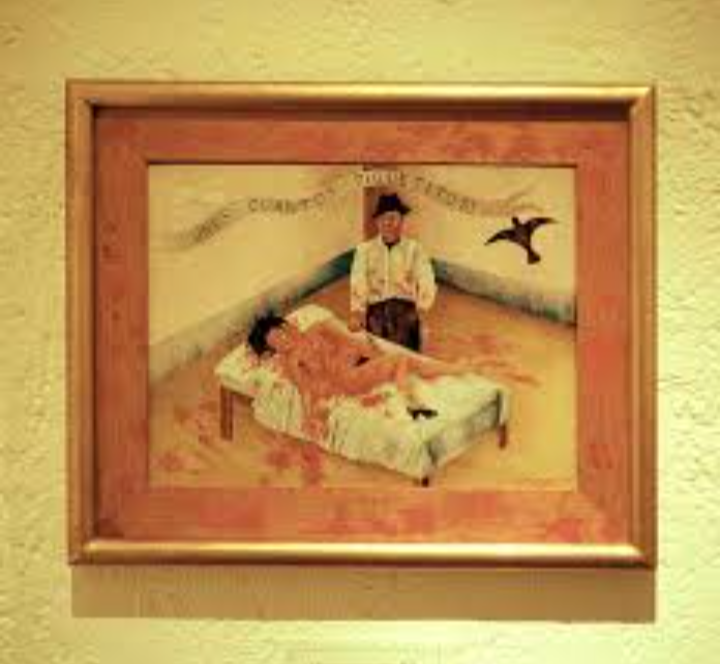 Imagen (obra «Unos Cuantos Piquetitos», creada en 1937, por Frida Kahlo. Ilustra una escena de un caso de feminicidio)