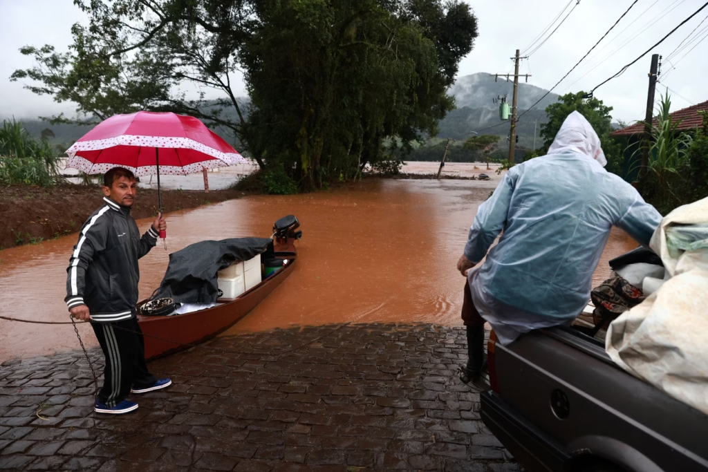 Sinimbu, un poblado de unos 10.000 habitantes en el centro de Rio Grande do Sul, se encuentra bajo agua, con calles y avenidas convertidas en ríos, de acuerdo con imágenes en medios locales.