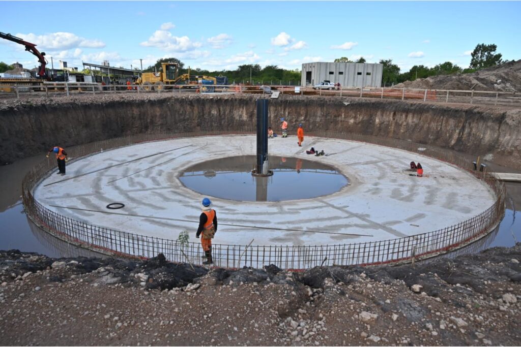 Actualmente, los trabajos se desarrollan en distintos frentes de manera simultánea, con avances significativos en la estación elevadora de ingreso, así como en los edificios de sopladores, taller, depósito, oficinas y laboratorios. También se registra un alto nivel de ejecución en las principales unidades del sistema de tratamiento, como sedimentadores primarios, reactores biológicos y sedimentadores secundarios.