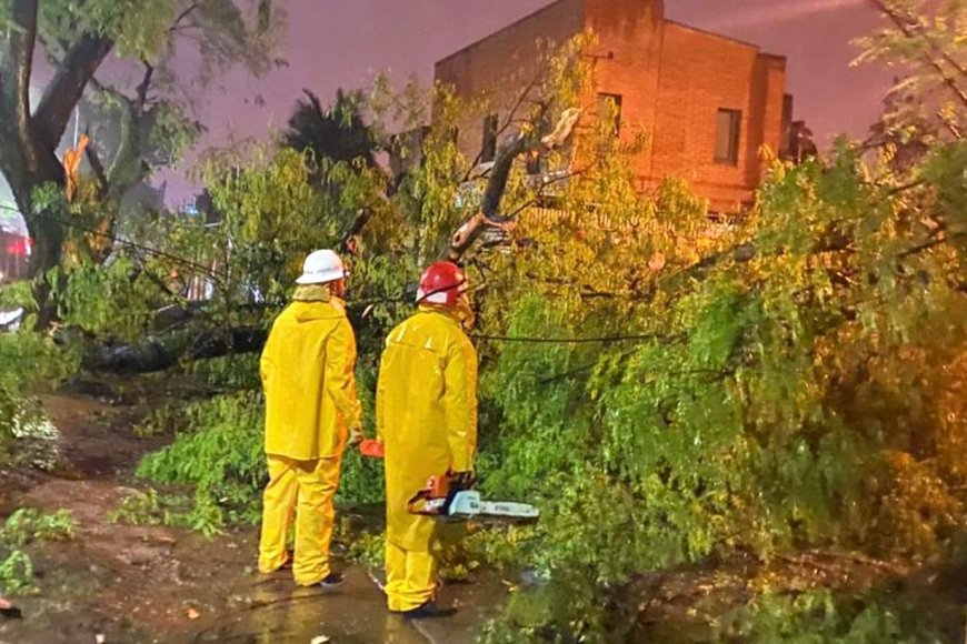 Permanecen trabajando personal y equipos de la Secretaría de Servicios Públicos, la Brigada Forestal Municipal, el 105, la Dirección de Electrotecnia y Comunicaciones, la Dirección de Tránsito y Transporte y la Dirección de Parques y Jardines.