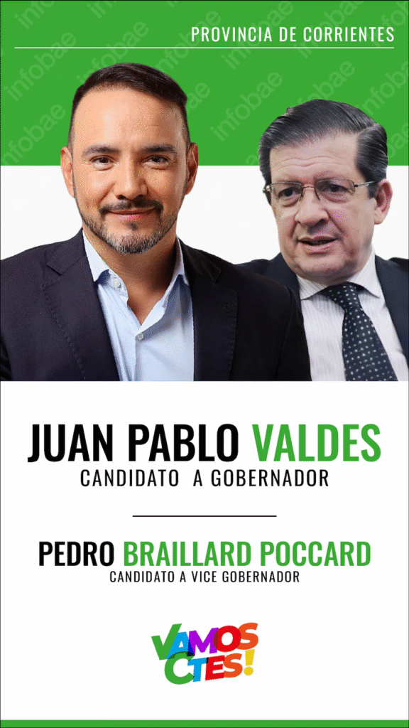 Por este motivo, promovió a su hermano, Juan Pablo Valdés, intendente de Ituzaingó. Va acompañado de Pedro Braillard Poccard, actual vicegobernador que buscará su reelección.
