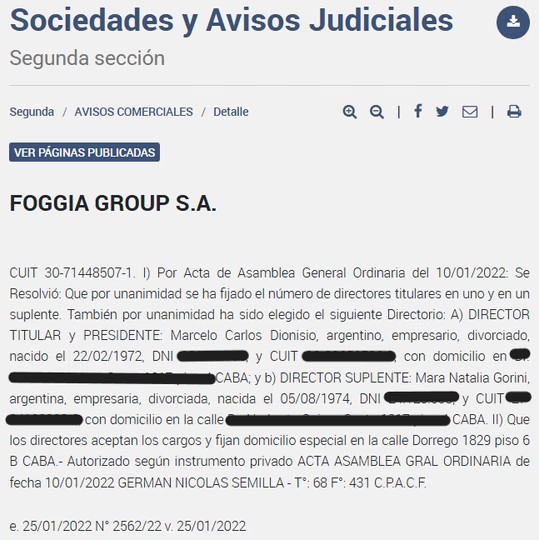 En el sitio también aparece un nombre propio importante. En el apartado de compañías que “confían” en MasBE se observan el título y logo del Grupo Foggia, una firma dedicada a la producción de eventos de entretenimiento. La conducción de la empresa se encuentra a cargo de Marcelo Dionisio, pero hasta hace muy poco era compartida con Mara Gorini. Y ese es otro nombre importante: Mara Gorini es una de las asistentes más importantes de Karina Milei, hermana del Presidente, en la Secretaría General. Su mano derecha.