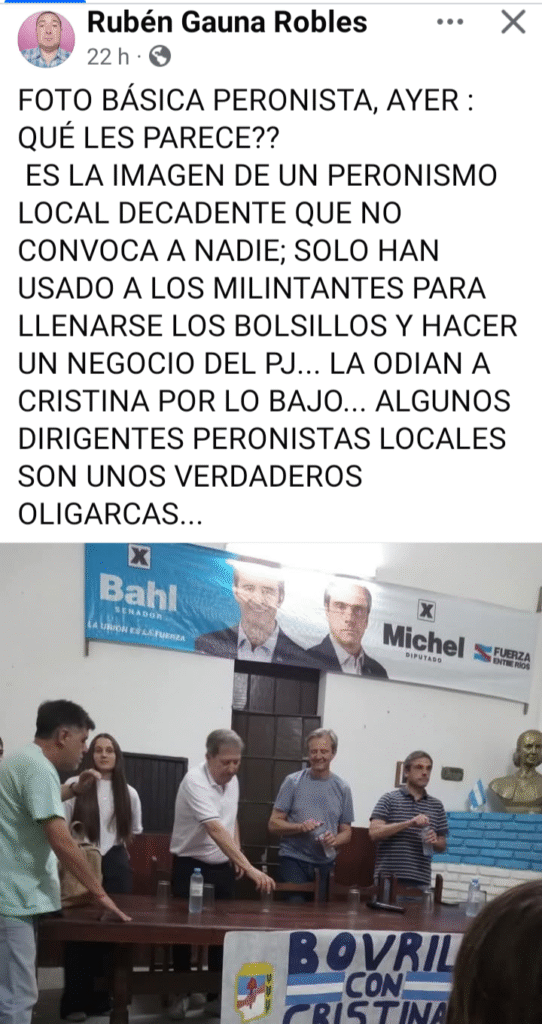 En la cuenta regresiva hacia las elecciones del 26 de octubre, la presencia de los candidatos a legisladores nacionales Adán Bahl y Guillermo Michel en el departamento La Paz dejó más preguntas que certezas. Las Unidades Básicas de Bovril y La Paz exhibieron una preocupante falta de convocatoria que encendió las alarmas dentro del propio peronismo entrerriano. ¿ Son los candidatos?, hay quienes afirman que se trata de ausencia de liderazgos locales.