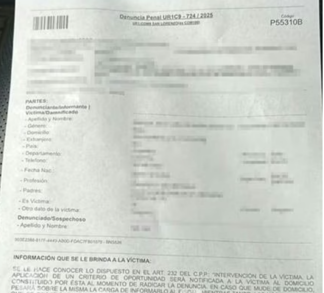 La denuncia quedó asentada bajo la carátula de “Daños”, con intervención de la Fiscalía Penal de San Lorenzo.