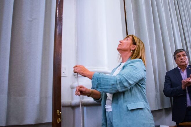 La Bandera Nacional fue izada por Juan Pablo Cosso (Villaguay – Más para Entre Ríos) y la Bandera de Entre Ríos por Gloria Cozzi (Concordia – Juntos por Entre Ríos).