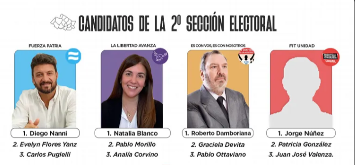 Principales candidatos: Fuerza Patria: Ariel Archanco. La Libertad Avanza: Francisco Adorni. Somos Buenos Aires: Pablo Nicoletti. Potencia: Jorge Metz. FIT-U: Laura Cano.