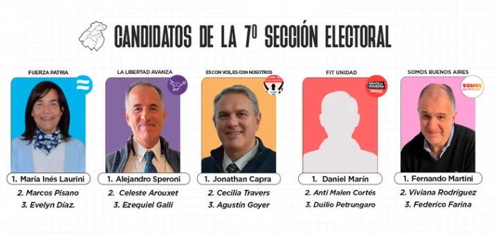 Principales candidatos: Fuerza Patria: María Inés Laurini. La Libertad Avanza: Alejandro Speroni. Es con vos: Jonathan Capra. Somos Buenos Aires: Fernando Martini. Potencia: Pedro Vigneau. FIT-U: Daniel Marín.