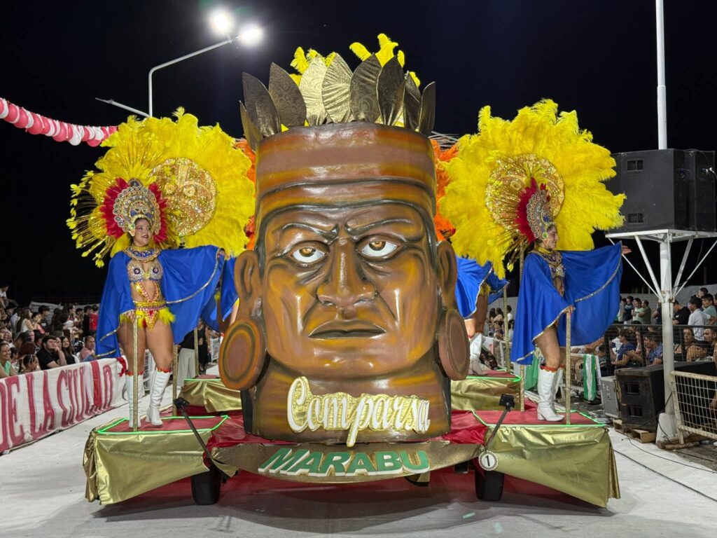 En el corsódromo se presentaron las comparsas Irupé, última campeona y actual portadora de la Reina del Carnaval; Marabú, con más de 50 años de trayectoria y reconocida como un símbolo histórico; e Ivoti Porá, otra comparsa tradicional que se destacó por su despliegue artístico y narrativo.