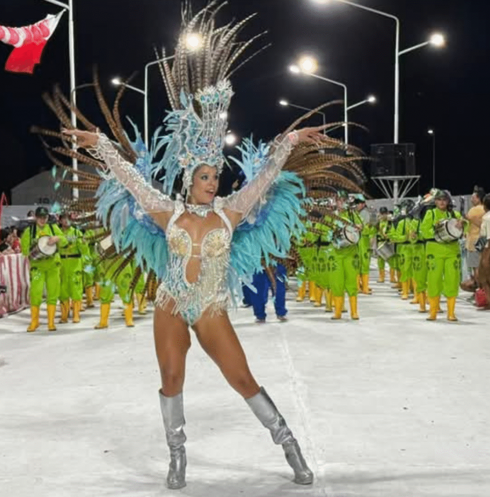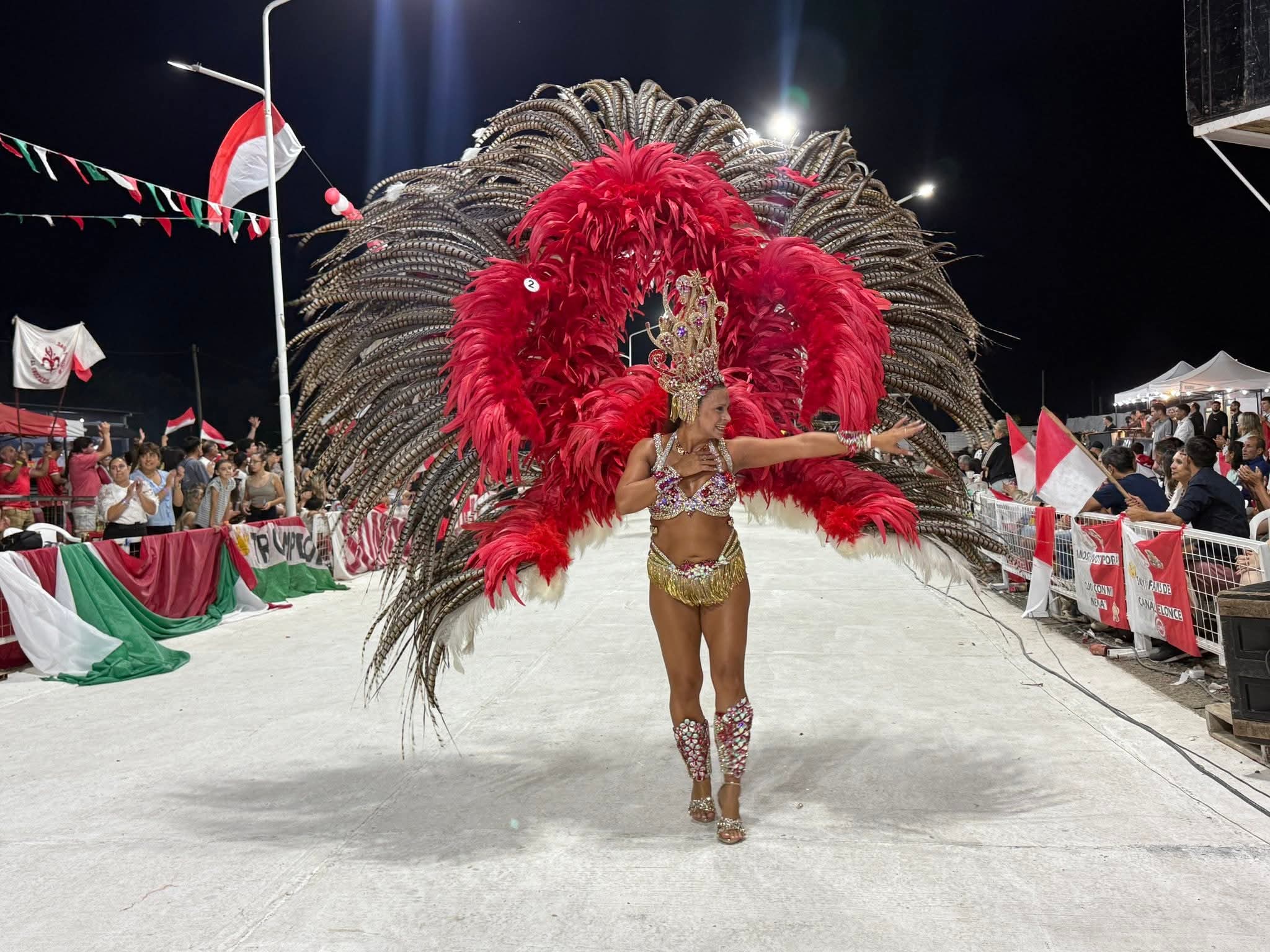 En ese marco, precisó que la comparsa está integrada por 70 bailarines y 65 batuqueros, que dan vida a un espectáculo de gran intensidad rítmica y visual. “Trabajamos todo el año, beneficios, rifas para poder solventar para lo que se ve acá”, explicó, en referencia a la organización previa y a la autogestión que sostiene a la agrupación.
