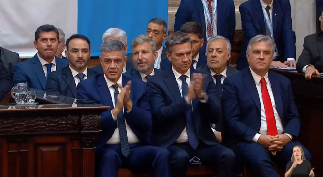Los gobernadores Rogelio Frigerio (Entre Ríos), Maximiliano Pullaro (Santa Fe), Martín Llaroya (Córdoba), Leandro Zdero (Chaco), Alfredo Cornejo (Mendoza), Claudio Poggi (San Luis), Rogelio Frigerio (Entre Ríos) y Gustavo Valdés y Elías Suárez (Santiago del Estero) se hacían presentes este domingo en el Congreso para presenciar el discurso del preisdente Javier Milei ante la Asamblea Legislativa.