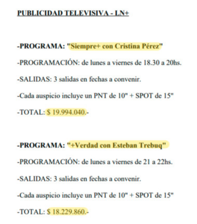 En los anexos del Boletín Oficial se detalla que el programa «Siempre+ con Cristina Pérez» recibirá $19.994.040, mientras que «+Verdad con Esteban Trebucq» embolsará $18.229.860, bajo la modalidad de «salidas por convenir«.