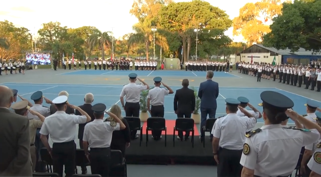 Durante la ceremonia también se rindió homenaje a los seis mejores promedios del ciclo lectivo, cuyos retratos fueron incorporados al Cuadro de Honor de la Escuela de Oficiales, en reconocimiento a su excelencia académica y compromiso con la vocación policial. El acto concluyó con el tradicional desfile de las formaciones y el saludo final de las autoridades, en un clima de orgullo institucional y profundo sentido de pertenencia.