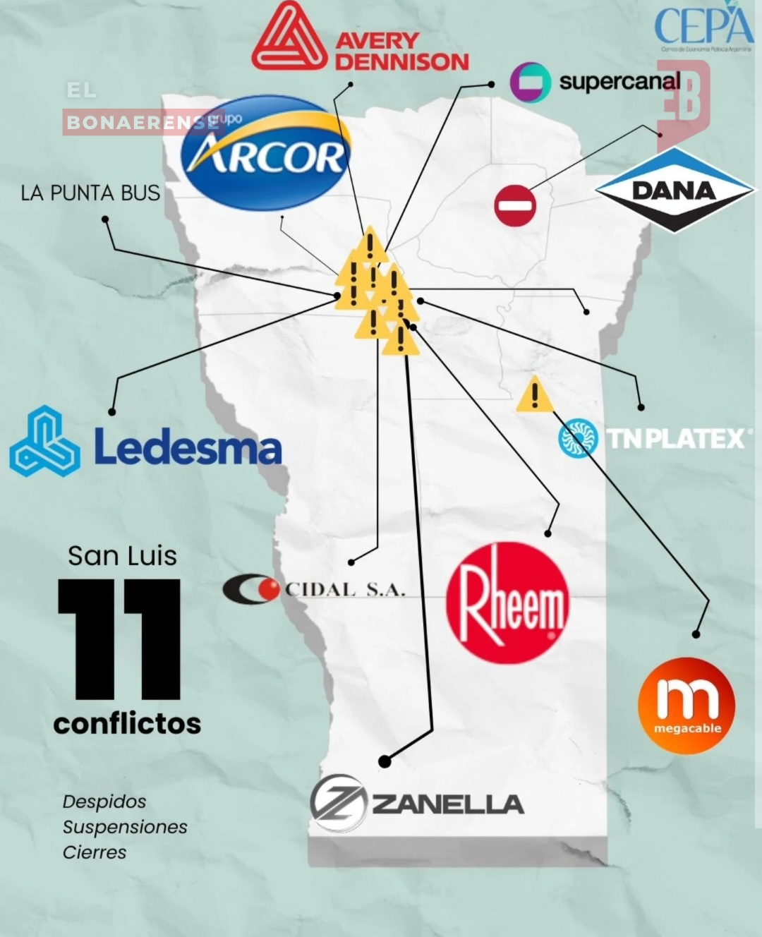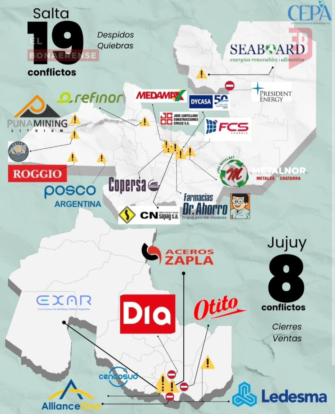 La Argentina atraviesa un escenario de fuerte deterioro del empleo y la actividad productiva. Entre 2024 y 2025 se registraron 628 conflictos laborales y cierres de empresas en todo el país, según un relevamiento del Centro de Economía Política Argentina (CEPA).. El informe da cuenta de una crisis extendida, con impacto directo en trabajadores del sector público y privado y una distribución territorial que alcanza a todas las regiones.