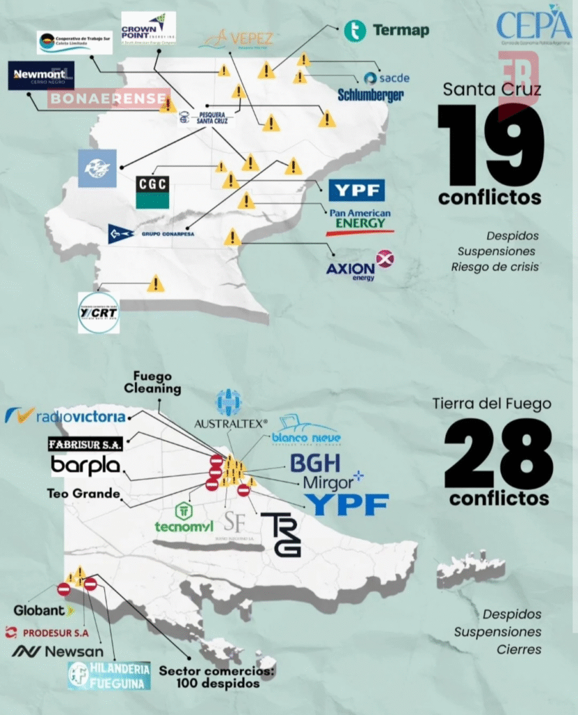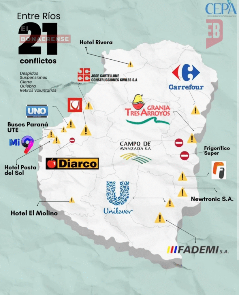 Lejos de concentrarse en una sola región, los conflictos se distribuyen de manera transversal en todo el país, alcanzando al centro productivo, el norte y el sur argentino, con impacto directo en la continuidad laboral de miles de trabajadores.