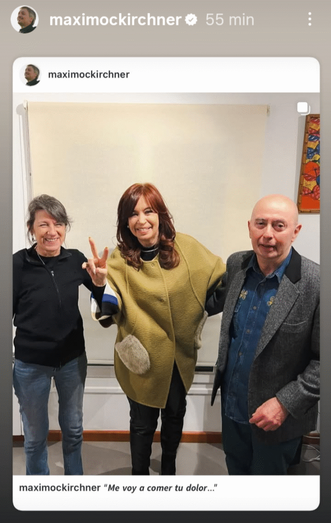 Carlos “Indio” Solari junto a Cristina en una fotografía que comparte Maximo Kirchner junto a una reflexión para este momento histórico en el que se discuten modelos de país desde la polarización que se viene dando entre lo que fue el gobierno Kirchnerista y lo que se vive actualmente con Javier Milei.