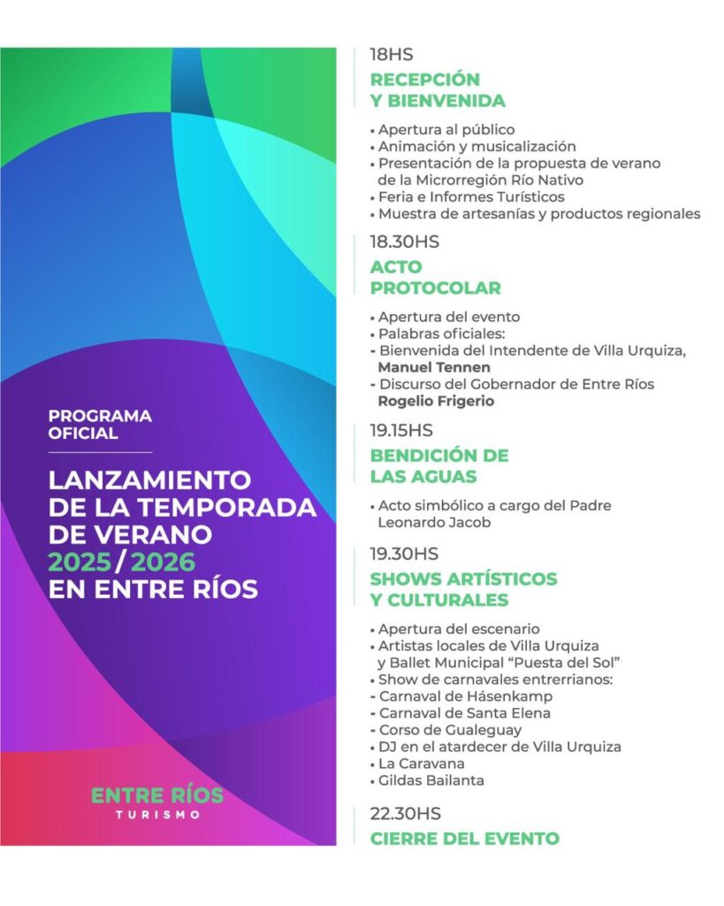 Villa Urquiza será el escenario en el que se realizará el lanzamiento provincial de la temporada verano 2025-2026 de la Microrregión RÍO NATIVO.