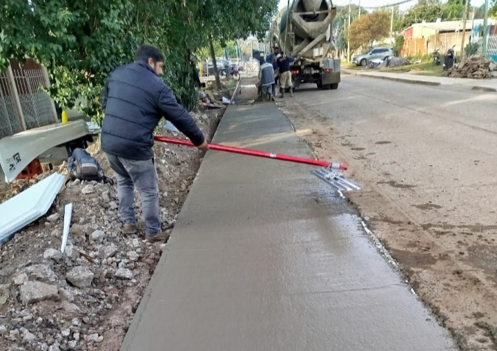 En esta oportunidad se encuentran realizando trabajos de hormigonado en sobreancho de calzada en Av. Hipólito Yrigoyen, obra que mejorará la circulación vial en la zona.
