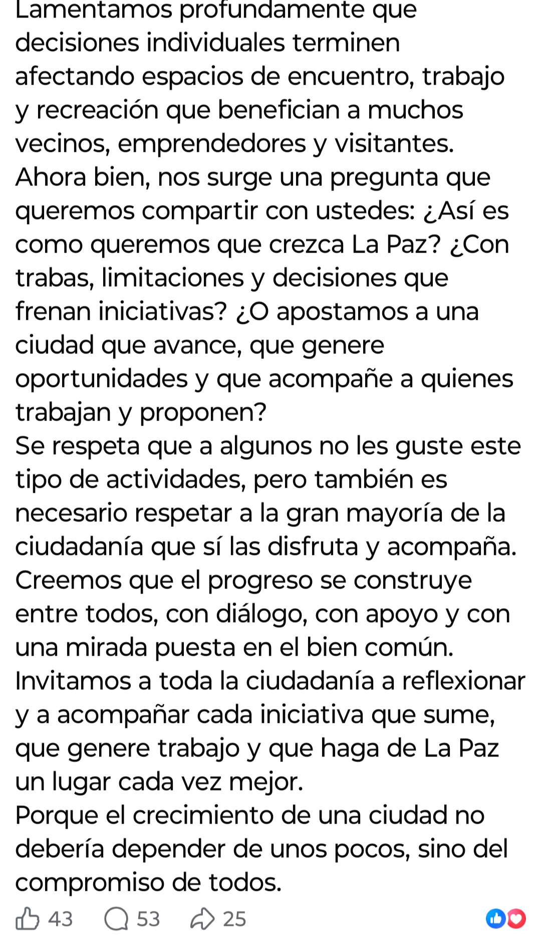 Primero que nada, queremos agradecer a turismo de La Paz por el apoyo que nos dan y por haber intentado realizar un mega evento este fin de Semana Santa en el Polideportivo.