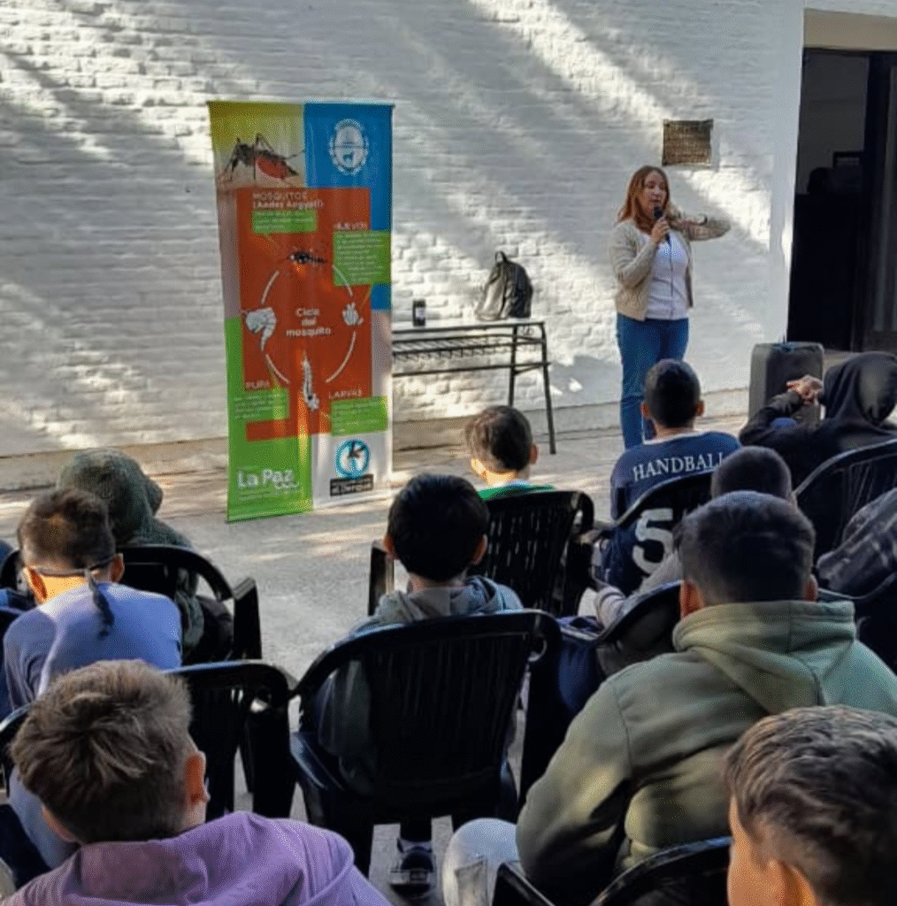 En esta oportunidad, la actividad se realizó en la Escuela Primaria N° 40 “Recuerdos de Provincia”, donde se abordaron temas relacionados con la colocación de ovitrampas, fumigación y sintomatología del dengue.