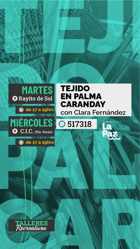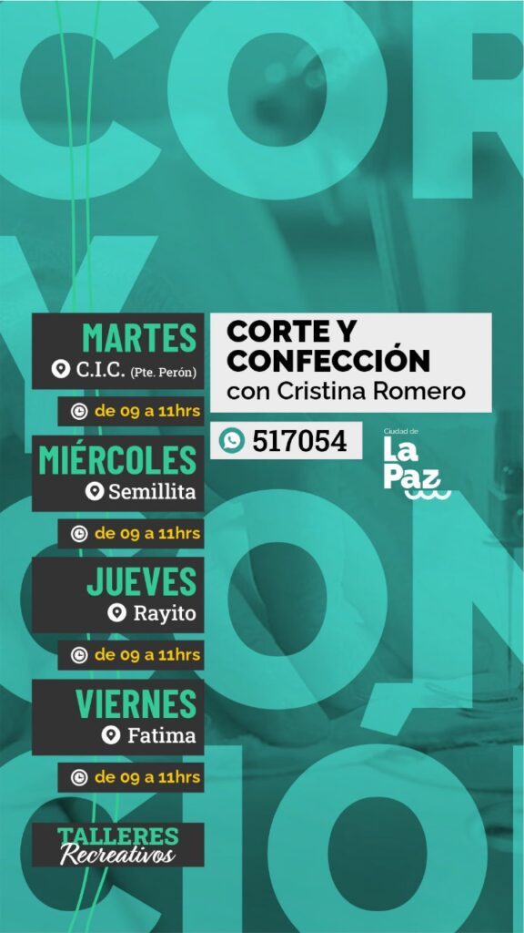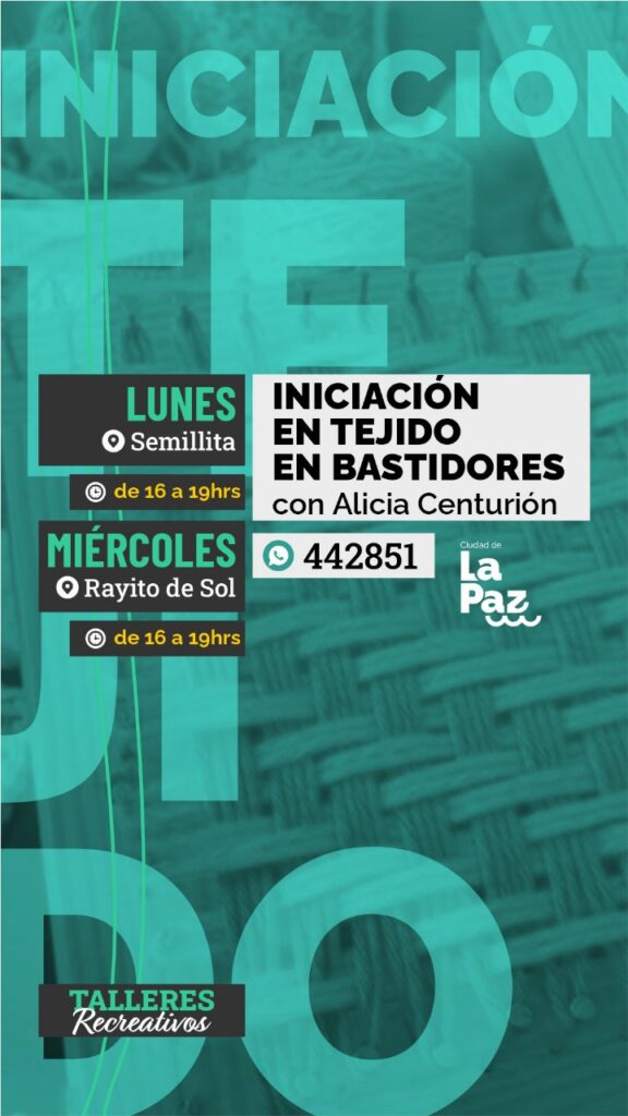 La Secretaría de Desarrollo Social de La Paz, invita a formar parte de los talleres de iniciación en tejido en bastidores, árabe, corte y confección, tejido en palma caranday, zumba y ritmos.