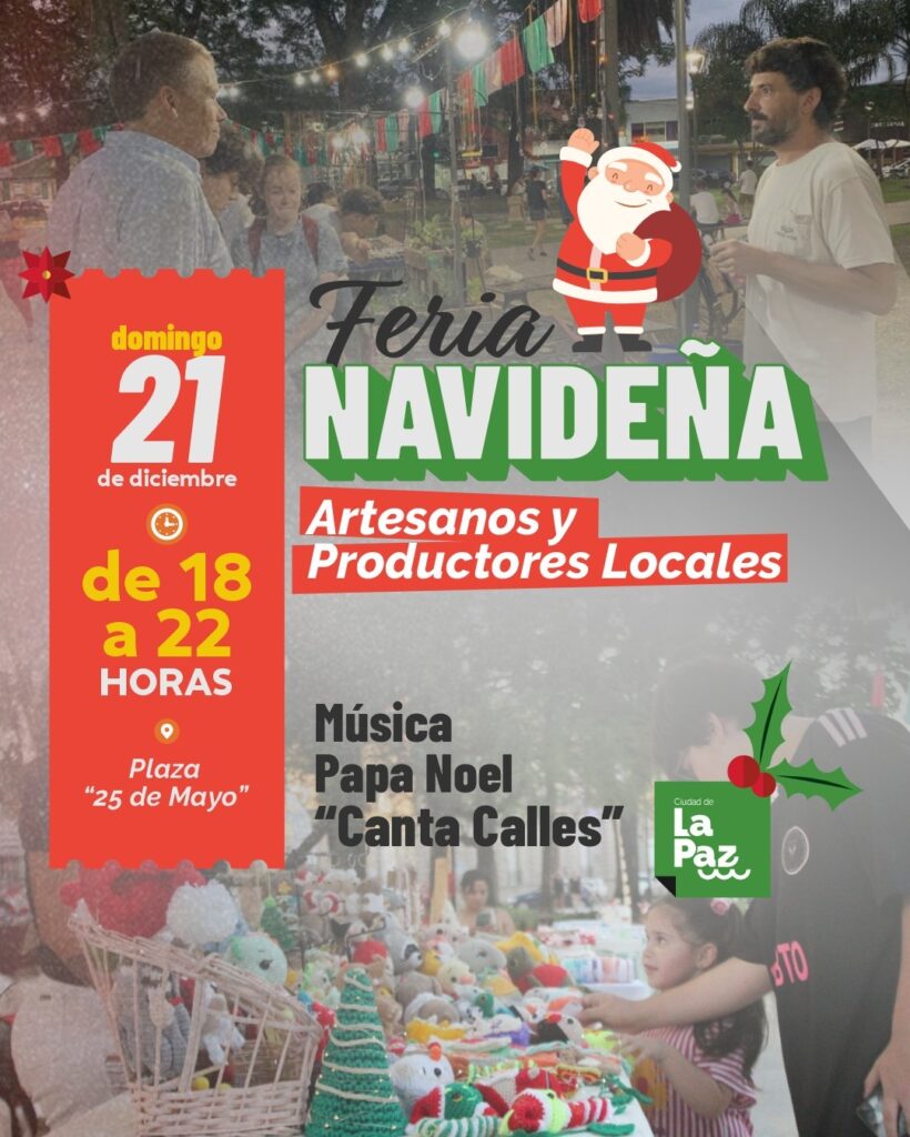 Desde las 18 hasta las 22 h, artesanos y productores locales ofrecerán creaciones únicas, ideales para elegir regalos especiales y apoyar el trabajo de quienes producen en nuestra ciudad. La propuesta se completa con música en vivo, espectáculos y la visita de Papá Noel, para que las infancias también disfruten de un momento mágico.