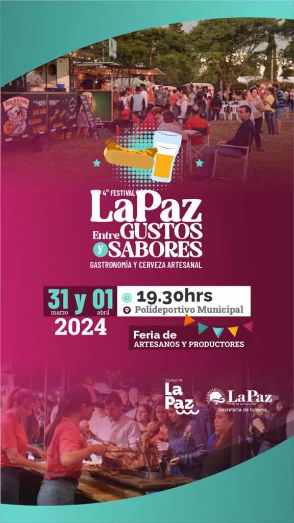 Se aproxima un fin de semana extra largo y la ciudad de La Paz se prepara para brindar gran cantidad de propuestas. El 31 de marzo y 1 de abril, en el Polideportivo Municipal, se desarrollará una nueva edición del festival de gastronomía y cerveza artesanal “Entre Gustos y Sabores”.