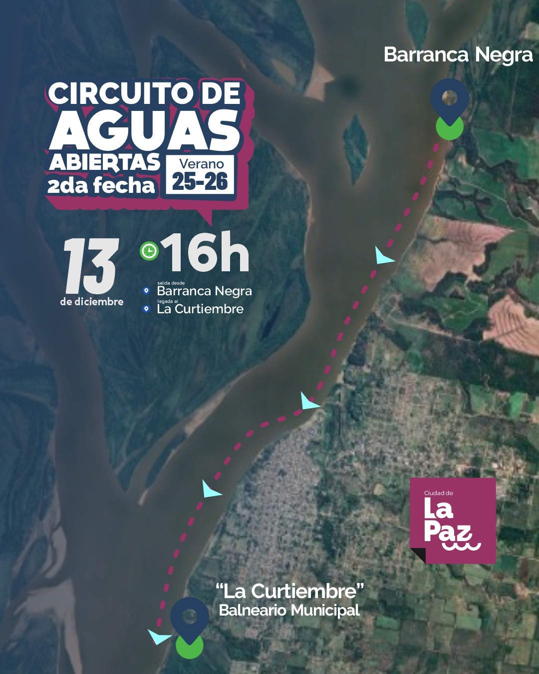 El próximo sábado 13 de diciembre se realizará la 2° fecha del Circuito Paceño de Natación, largada a las 16hs. Entérate cómo podés particular. La Paz y el gran río Paraná te esperan.