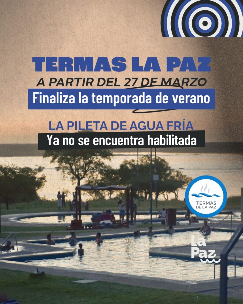 Desde el complejo Termal informaron a la comunidad que, al haber finalizado la temporada de verano, la pileta de agua fría ya no se encuentra habilitada.
