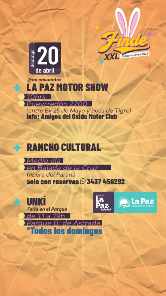 – La Paz Motor Show: Exhibición de vehículos el 19 y 20 de abril, en Pueyrredón 2200.