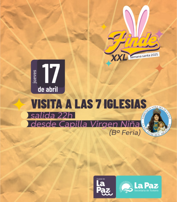 – Visita a las 7 iglesias: El 17 de abril, salida desde Capilla Virgen Niña B° Feria a las 22 horas.