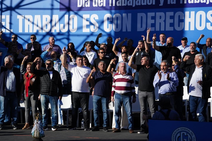 “Le queremos decir basta a este Gobierno. Se terminó la paciencia, señor Presidente”, abrió el acto el camioneros Octavio Argüello, integrante del triunvirato de mando de la CGT. Fue el discurso más breve de los jefes cegetistas.