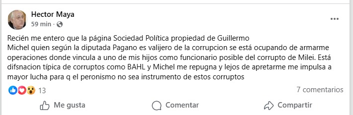 Según adelantó el propio Maya, la presentación judicial incluiría no solo el presunto financiamiento irregular del entorno de Michel a La Libertad Avanza, revelado oportunamente por la periodista Marcela Pagano, sino también una “operación de difamación” dirigida contra su familia, a través de un portal web que —según afirma— pertenecería a allegados de Michel.