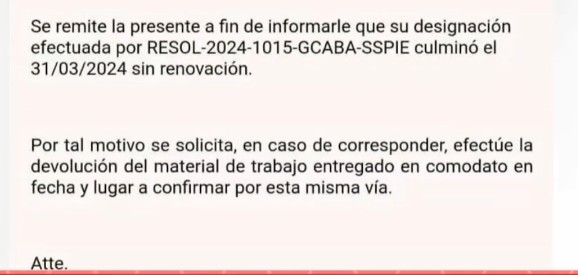 Hoy también se conoció la información sobre 300 empleados despedidos del MINISTERO DE EDUCACIÓN de CABA