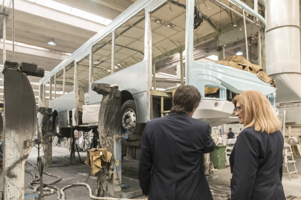 La Presidenta Municipal visitó este martes la planta de ItalBus, en la localidad bonaerense de Avellaneda, donde se fabrican las 77 nuevas unidades que comenzarán a prestar el servicio de transporte urbano de pasajeros a partir de diciembre, bajo la nueva concesión a cargo de la Unión Transitoria de Empresas (UTE) conformada por Transporte San José S.A. y Kenia S.A.