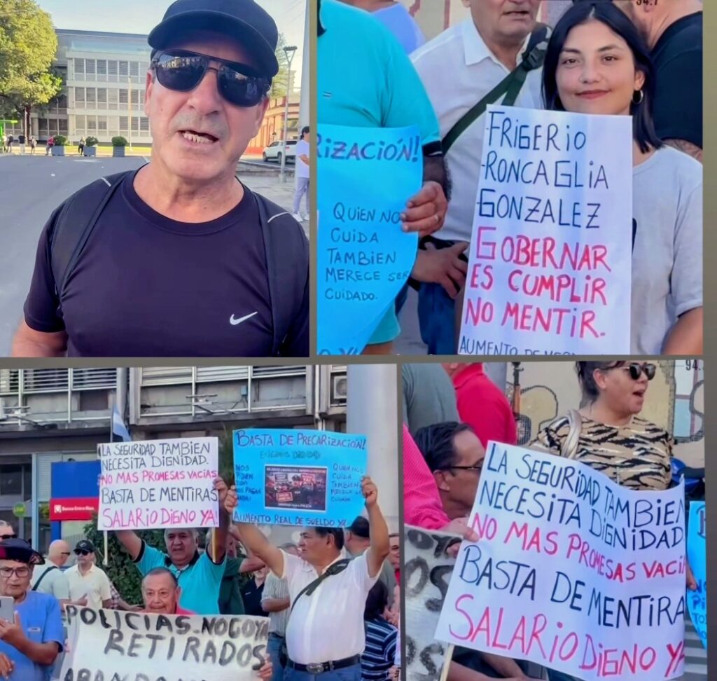 Este jueves, policías retirados y autoconvocados se movilizan en Plaza Mansilla para visibilizar la situación salarial del sector. «Este gobierno tiene los sueldos congelados hace varios meses. Lo poco que ha dado no alcanza para cubrir ni siquiera la canasta básica», comentó Pedro, uno de los retirados presentes.