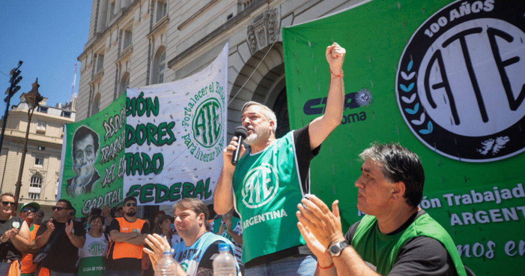 La Asociación Trabajadores del Estado (ATE) lleva adelante este miércoles un paro nacional con movilización, en rechazo a la reforma laboral impulsada por el Gobierno, el acuerdo comercial con Estados Unidos y el deterioro salarial que atraviesa el sector público.