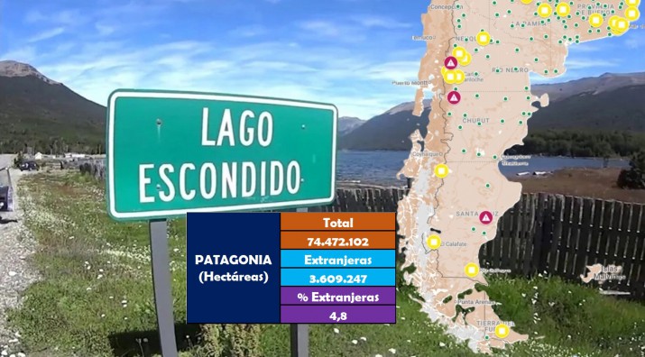 La Patagonia cuenta 74.472.102 hectáreas de las cuales 3.609.247 han sido compradas por extranjeros, reflejando un nivel de extranjerización que se ubicó en promedio del 4,8% y es levemente menor al 5% existente en todo el país.