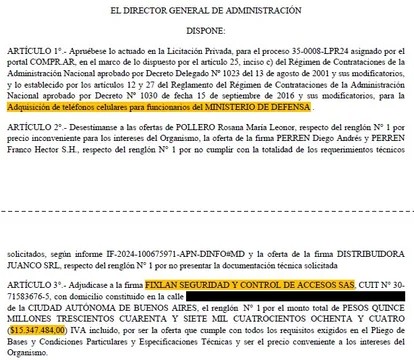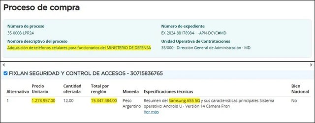 A fines de 2024, Defensa gastó un dineral para conseguir televisores 4K, más de 150 computadoras, decenas de heladeras y cafeteras y 74 equipos de aire acondicionado. Las compras fueron realizadas a través de licitaciones públicas como la del 15 de noviembre, por US$354.340 (que, como se lee, fue pagada en dólares); la del 19 del mismo mes, por $235.636.579; y otra un tanto particular: la “adquisición de teléfonos celulares para funcionarios del Ministerio de Defensa”, inscripta bajo el número de proceso 35-0008-LPR24 y pagada en $15.347.484 el 7 de octubre de 2024.