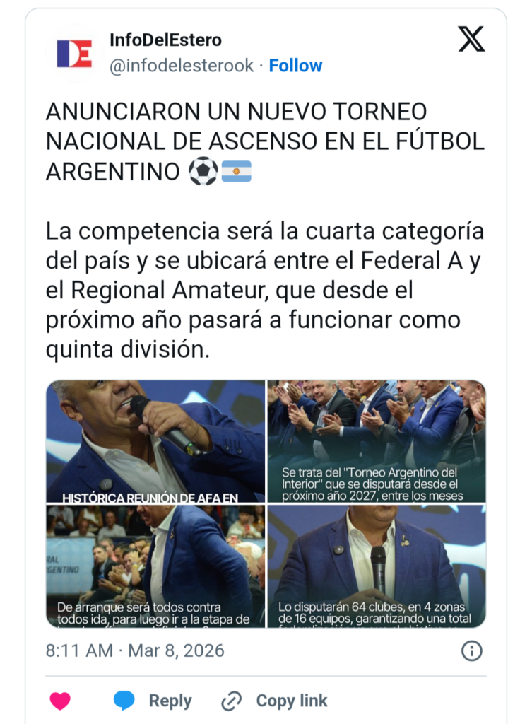 Durante el acto también se mencionaron medidas vinculadas a las categorías del interior. Tapia destacó el trabajo del Consejo Federal y anticipó cambios en los ingresos de los clubes.