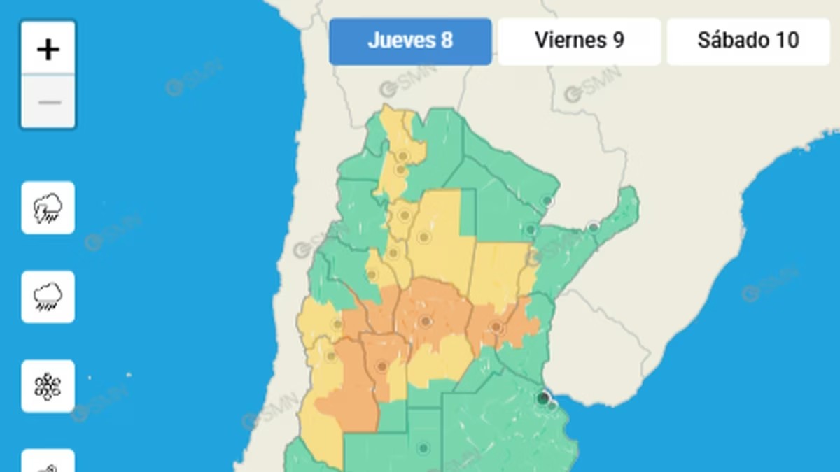 El organismo indicó que se prevén lluvias y tormentas, algunas localmente fuertes, con valores de precipitación acumulada entre 20 y 50 milímetros, que podrían ser superados de manera puntual.