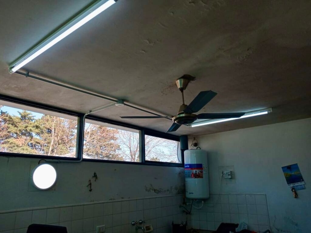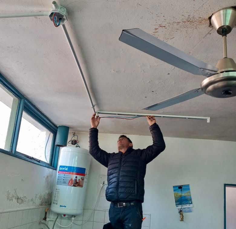 En este sentido, el personal municipal reemplazó un calefón a gas obsoleto por un termotanque eléctrico. Asimismo, la Municipalidad aportó los conductores electricos (cables), y realizó modificaciones en la iluminación de la cocina, instalando tuberías de PVC en el techo, dos plafones y dos equipos de 18 watts.