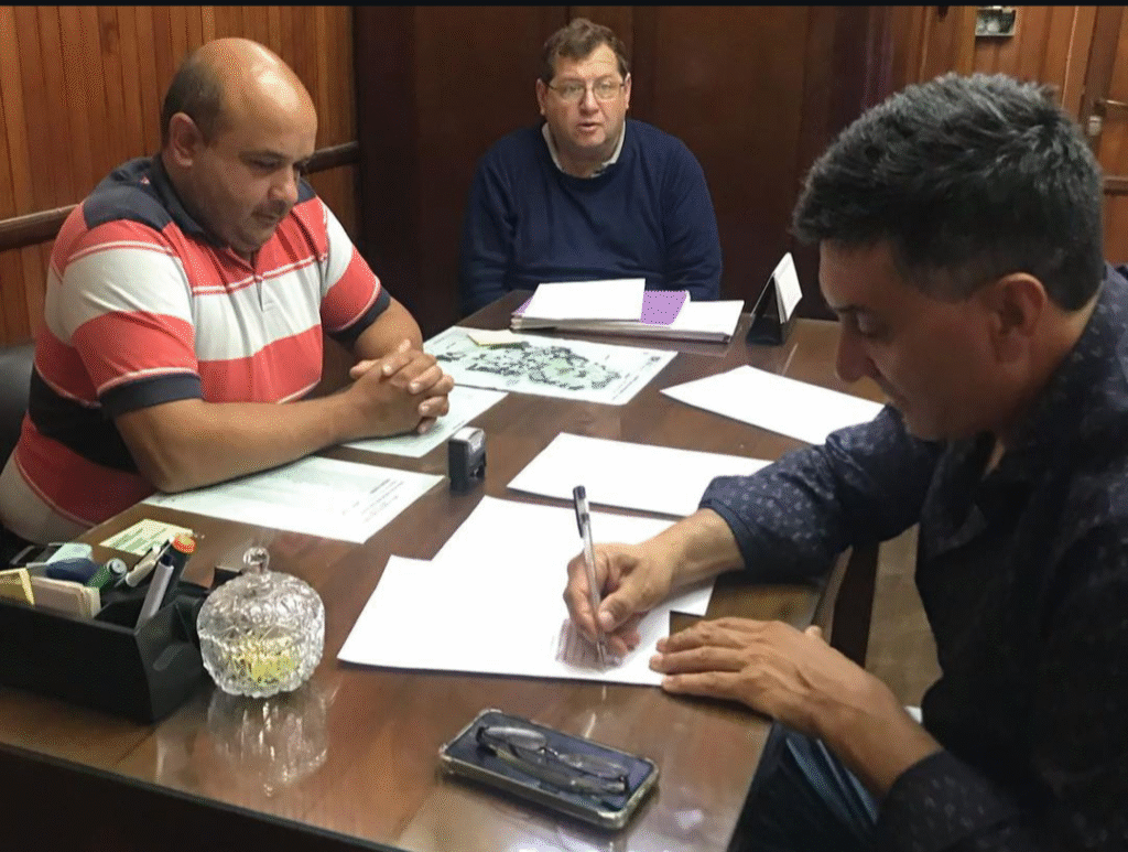 Este lunes, en La Paz, el intendente de San Gustavo, César Simino, firmó junto al Subdirector de Vialidad Provincial Zonal La Paz, Gustavo García, y el Jefe Técnico, Juan Fernández, un importante convenio. Según lo expresó el intendente, es un acuerdo muy esperado por las comunidades.