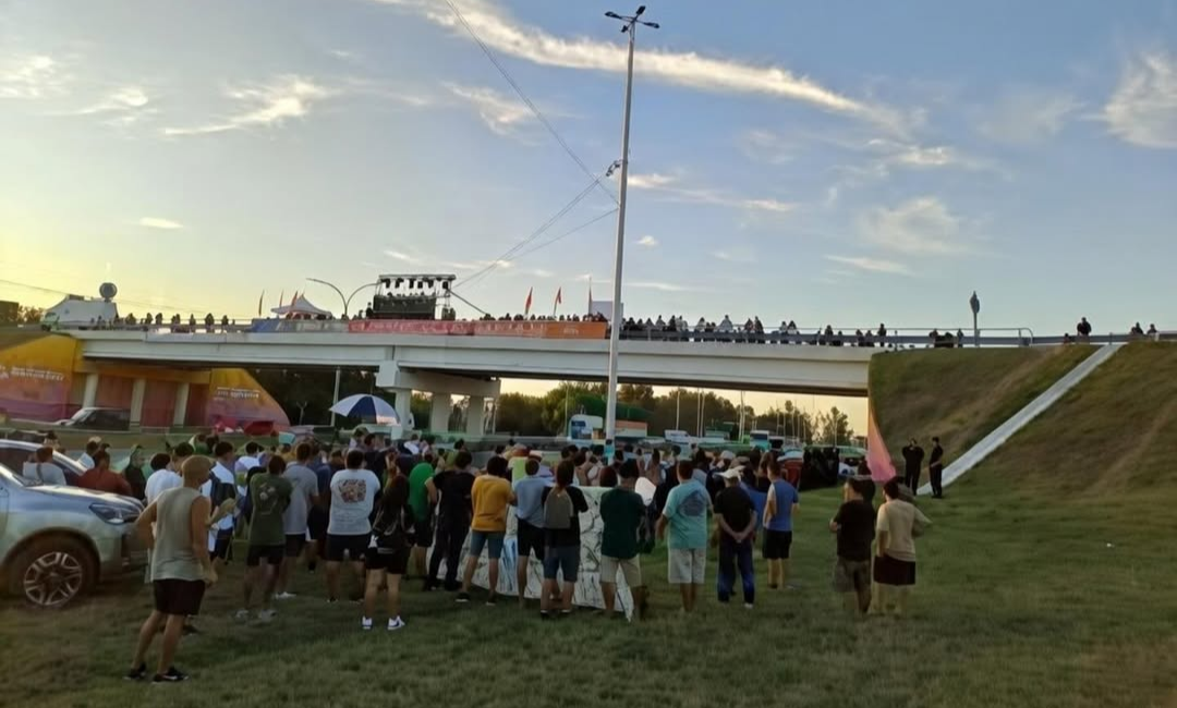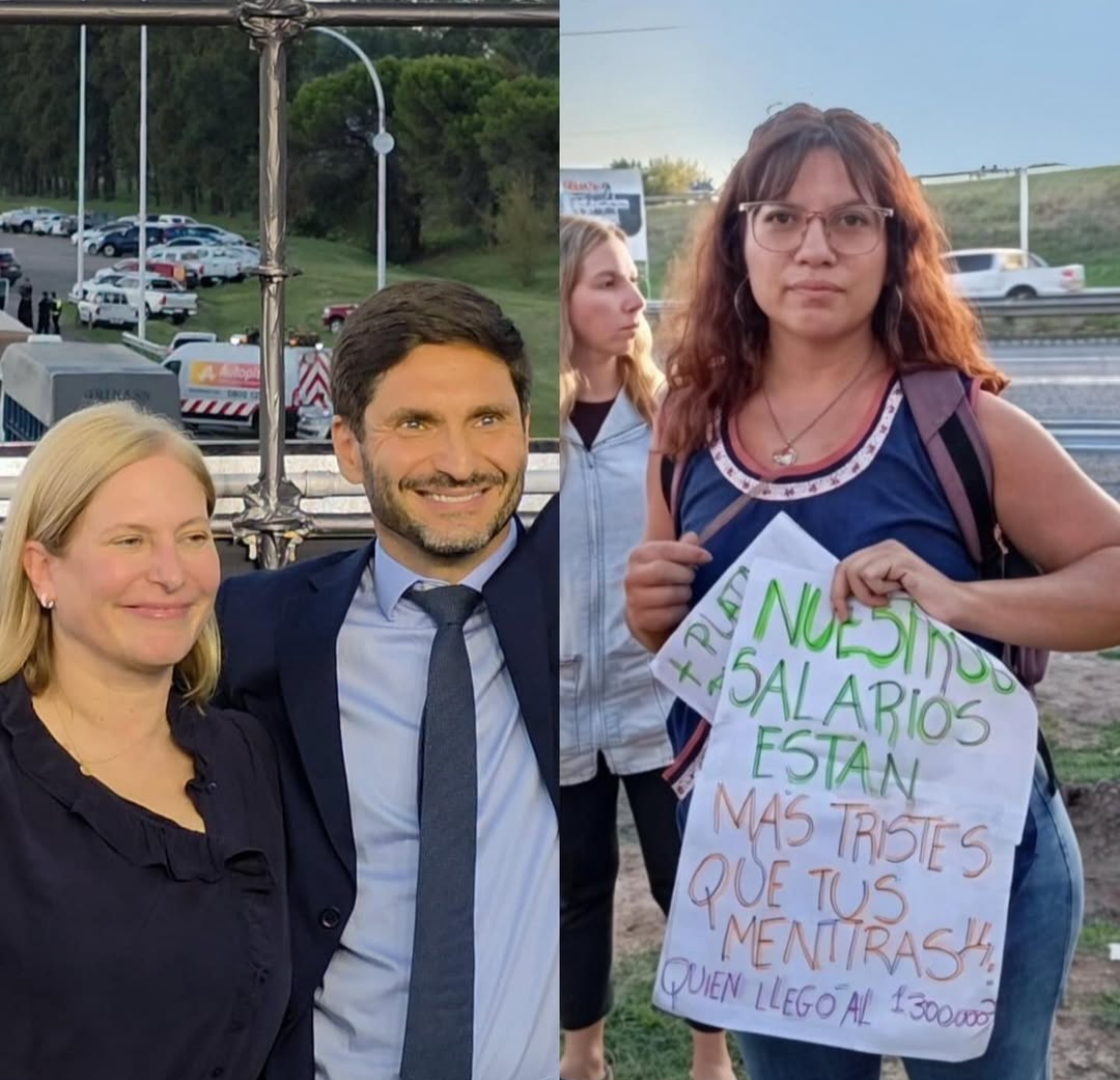 La protesta se desarrolló en paralelo al acto oficial, en una jornada donde la inauguración de una obra de infraestructura clave para la región quedó atravesada por el conflicto salarial docente que continúa sin resolverse