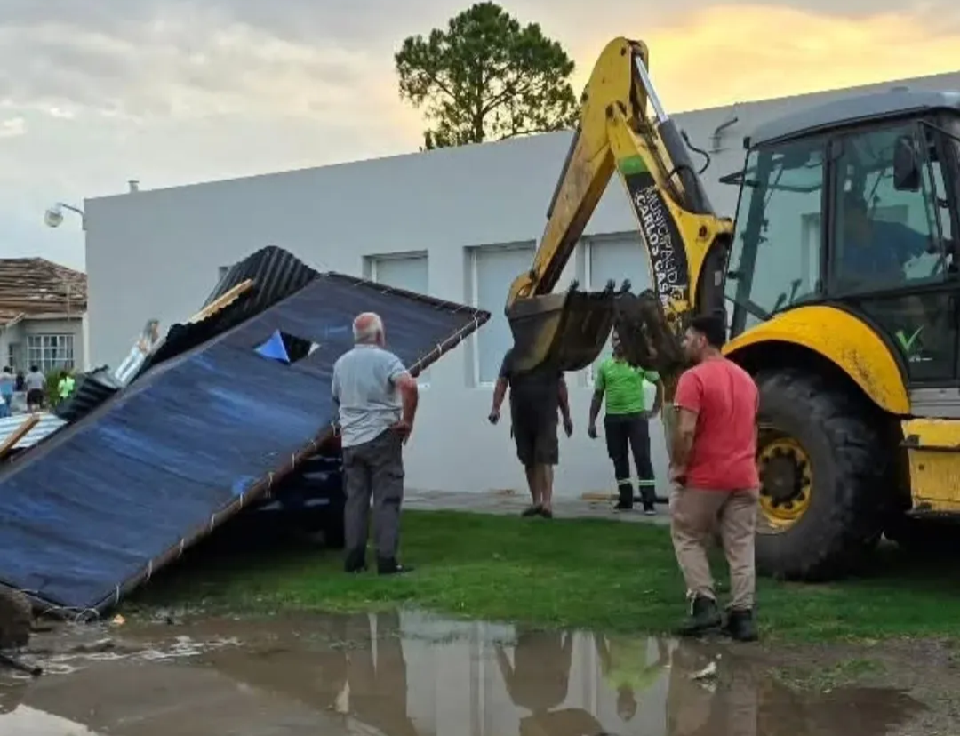 El daño no se limitó a las viviendas, sino que también afectó a importantes instalaciones de la ciudad. En el Hospital Municipal, el galpón donde se resguardan las ambulancias quedó destruido. “El galpón de las ambulancias está hecho pelota”, expresó uno de los trabajadores del hospital, al constatar que el techo se desplomó y las paredes fueron gravemente dañadas. Tambien volaron techos del edificio que atiende la salud de la población. Además, un poste de luz fue arrancado de raíz y cayó sobre varios árboles cercanos, lo que dejó sin suministro eléctrico gran parte del área.