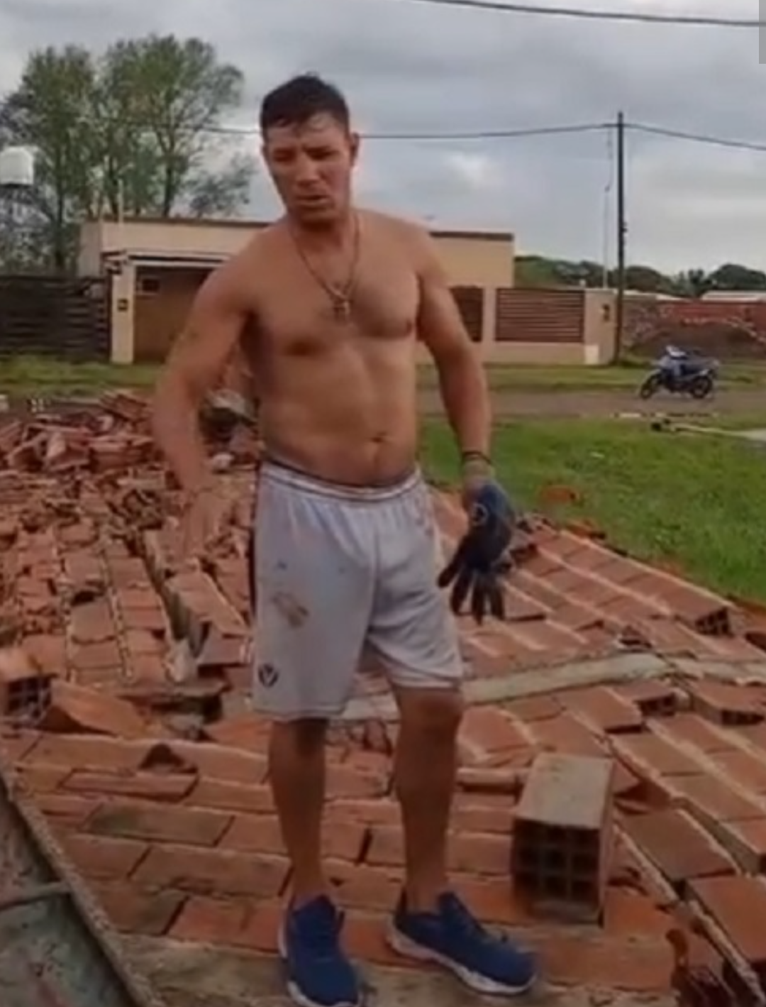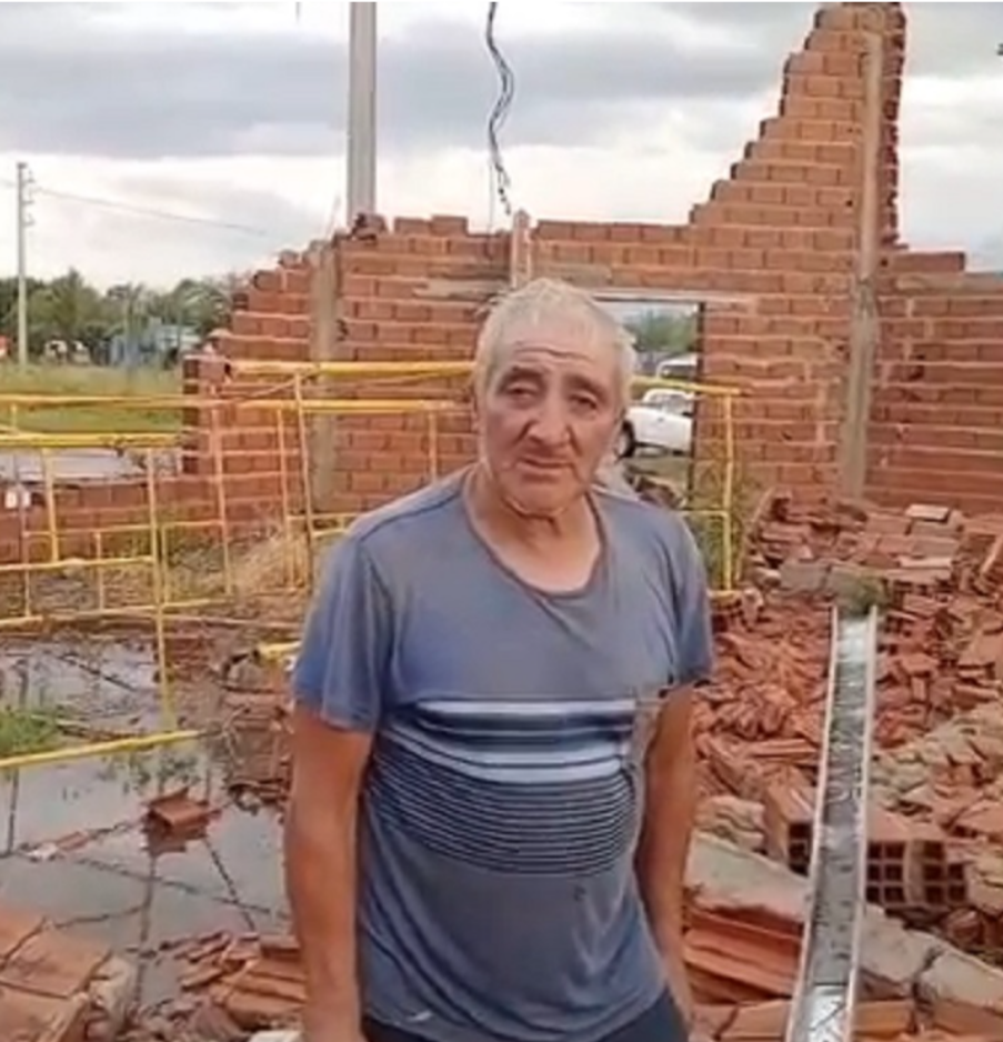 Uno de los casos más impactantes involucró a la familia Carballo, oriunda de Dudignac y dedicada a la albañilería, quienes trabajaban en una obra en construcción cuando las ráfagas de viento destruyeron totalmente una casa casi construida en su totalidad.