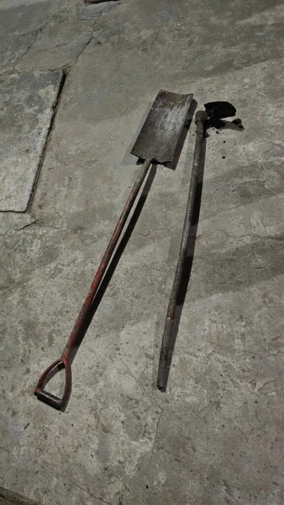 Los efectivos no encontraron en el lugar ni al hombre ni a la pala en el inmueble, pero sí el parlante. La herramienta, por su parte, se halló en la casa de una vecina que aseguró que Giménez se la dejó porque iba a hacer un trabajo que nunca se llevó a cabo.