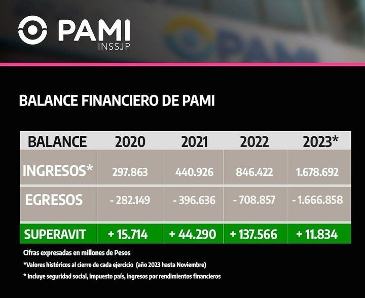Hoy el gobierno lanzó ataques a nuestra gestión en PAMI. Puro cuento. Los 4 años fueron superavitarios. Todos los balances de sumas y saldos correspondientes a nuestra gestión fueron presentados en la AGN. Es más, el 10 de diciembre último dejamos casi 300 mil millones, que ahorramos durante nuestra gestión, en un plazo fijo y en el fondo de inversión del Banco Nación. Tanto la AGN como el Banco Nación pueden dar cuenta de eso. Nuestra administración tuvo dos pilares: superávit y ahorros.